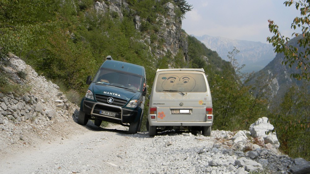 In Albanien standen in erster Linie schwierige Gebirgspisten auf dem Programm, die vom Auto tadellos gemeistert wurden (siehe unsere Albanien-Reiseberichte)