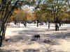 Sandplatz mit vielen, aber nicht allzu hohen Bäumen. Grillplätze,