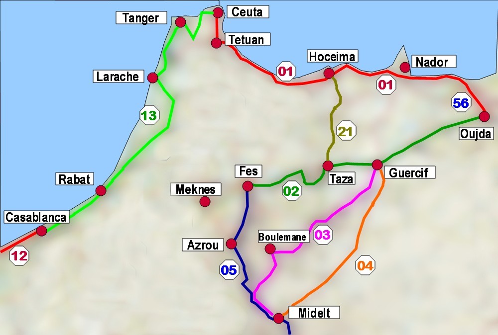 Ceuta - Tetuan - Qued Laou - El Jebha - Hoceima - Nador - Ras el Ma - Saidia - Oujda |
