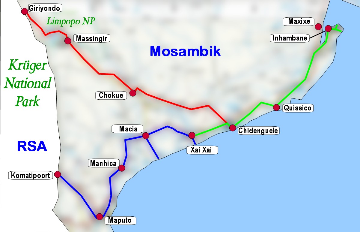 Komatipoort (RSA) - Maputo - Marracuene - Manhica - Macia - Praia do Bilene - Xai Xai - Praia do Xai Xai |