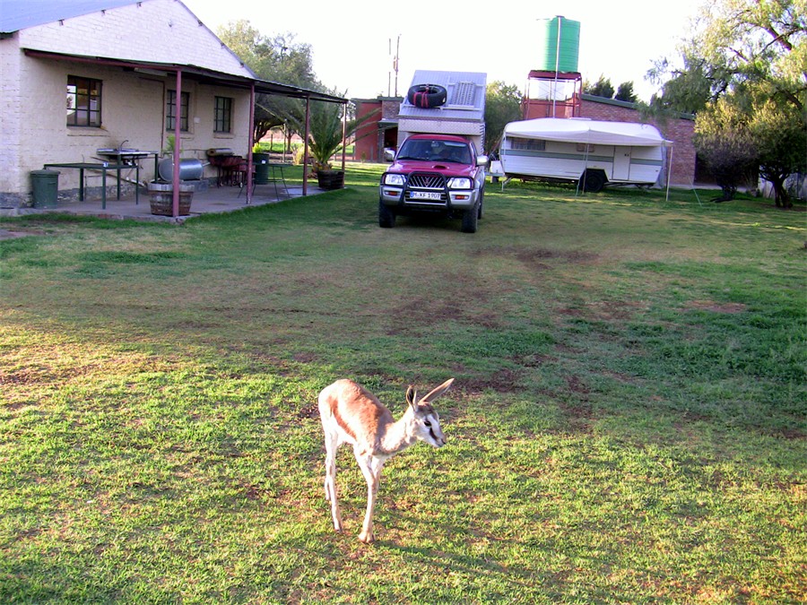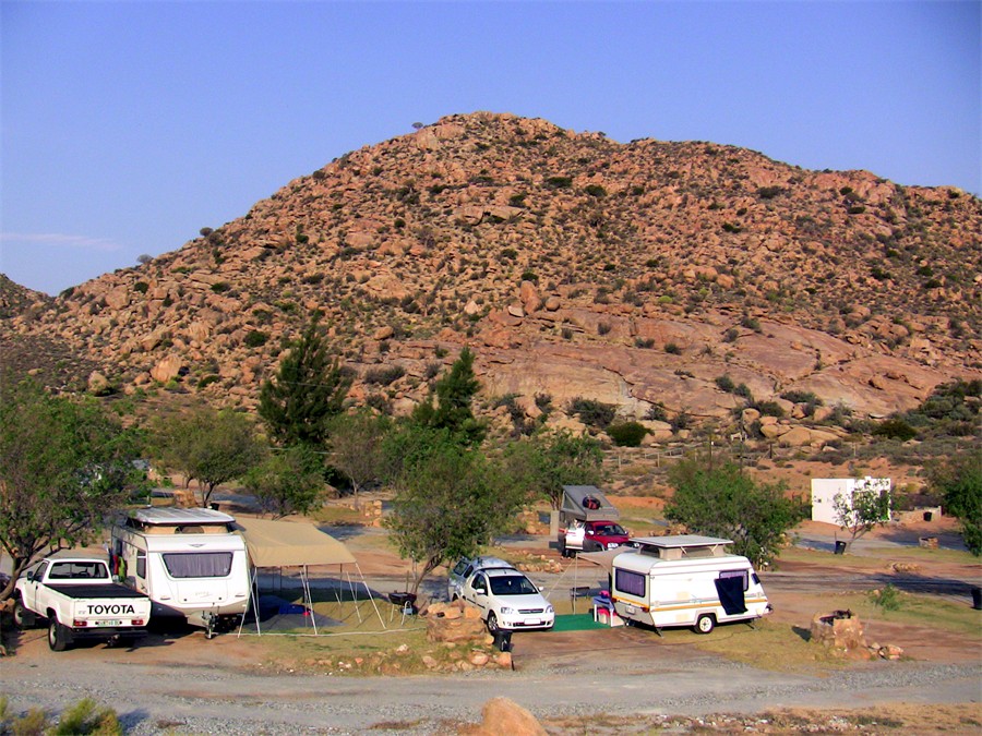 Der Camping-Hinweis an der Hauptkreuzung im Ort Richtung Osten ist falsch, erführt nur zum Wohnhaus des Betreibers, es gilt die u. a. Lage. Für Reisende, die von George Richtung Augrabies Falls unterwegs sind,  bietet sich dieser Platz an, weil er grob in der Mitte der Strecke liegt.
