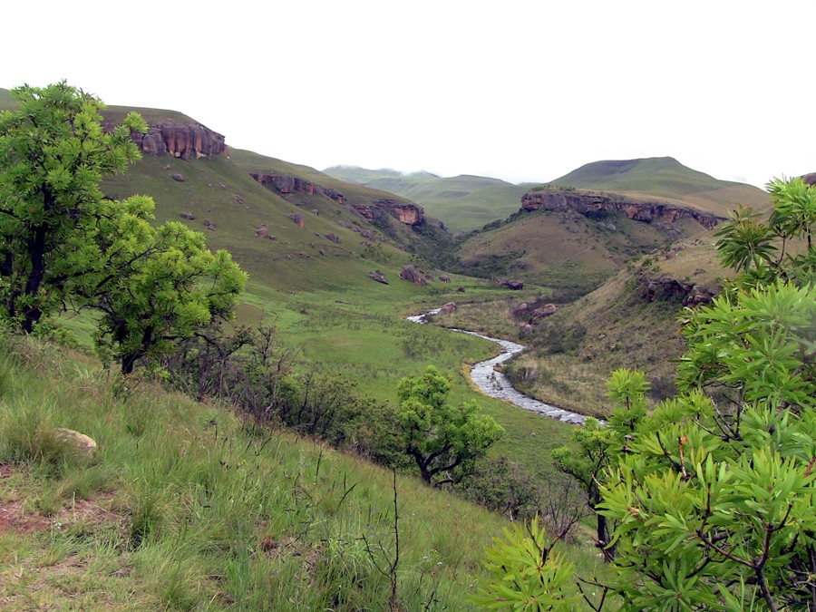 Kilometer an der Thukela entlang Richtung Talende und endet
