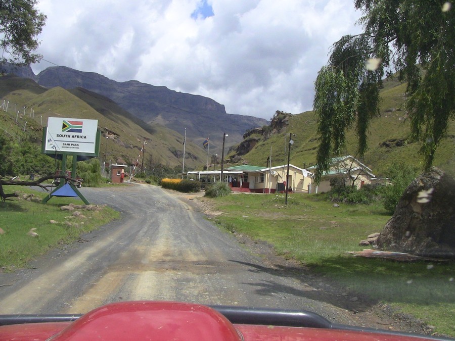 Landesgrenze, der Grenzposten auf südafrikanischer Seite (1950 m). Wer im Land bleiben will, muss also hier umdrehen. Die weitere Strecke