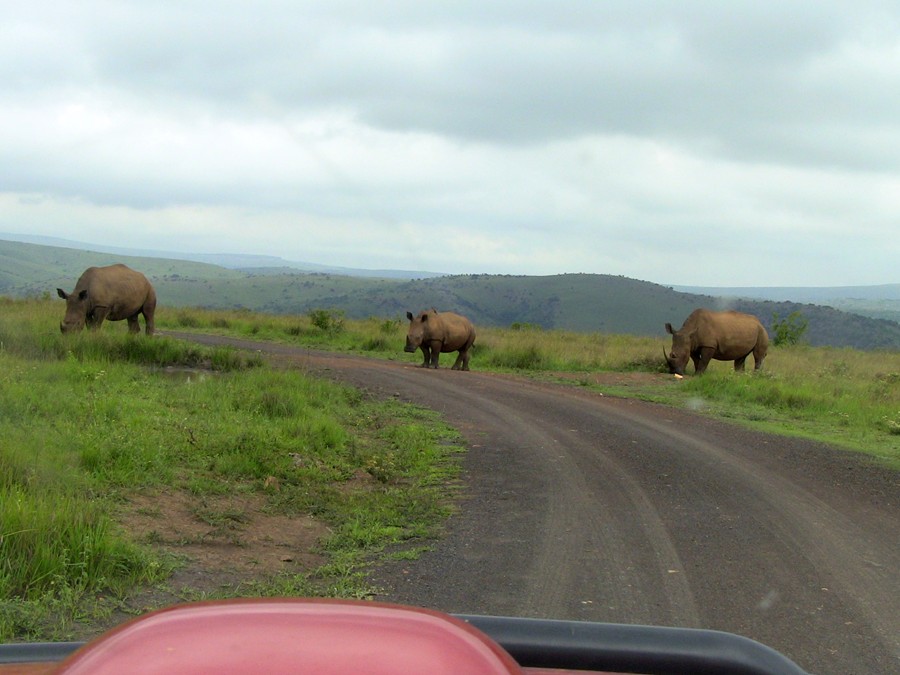 Neben den häufig anzutreffenden Tieren sehen wir u. a. eine große Anzahl von Nashörnern, leider aber keine Elefanten und Büffel.