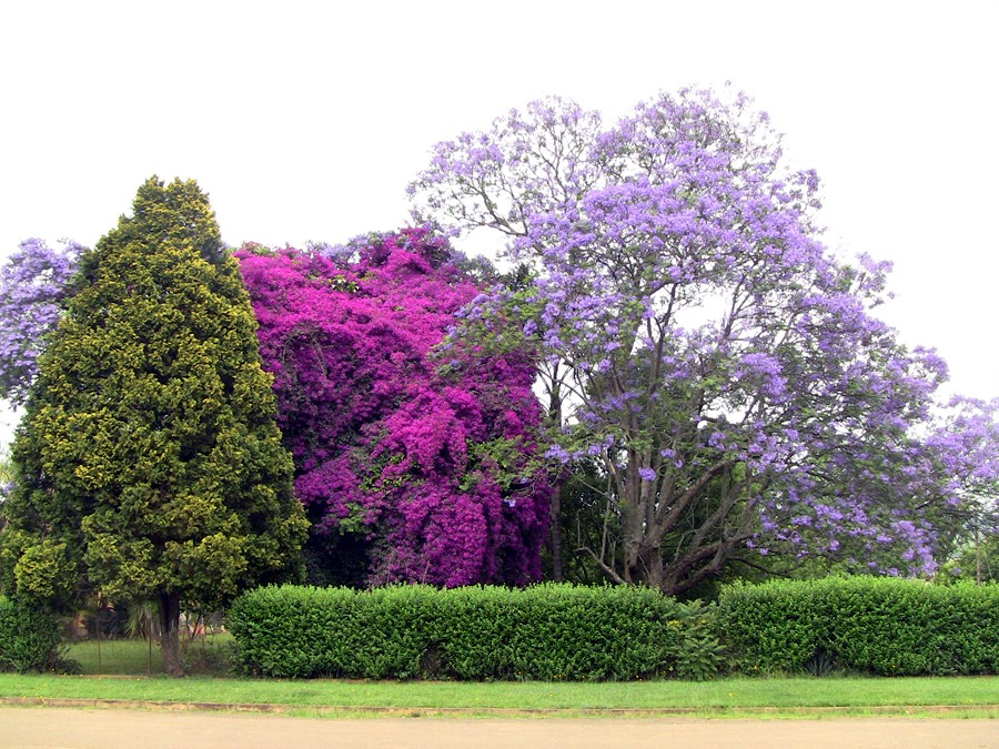 In den Außenbereichen propere Wohngebiete mit ungewöhnlich breiten Alleen, in denen im November die Jakarandien-Bäume in ihrer Farbenpracht zu explodieren scheinen.
