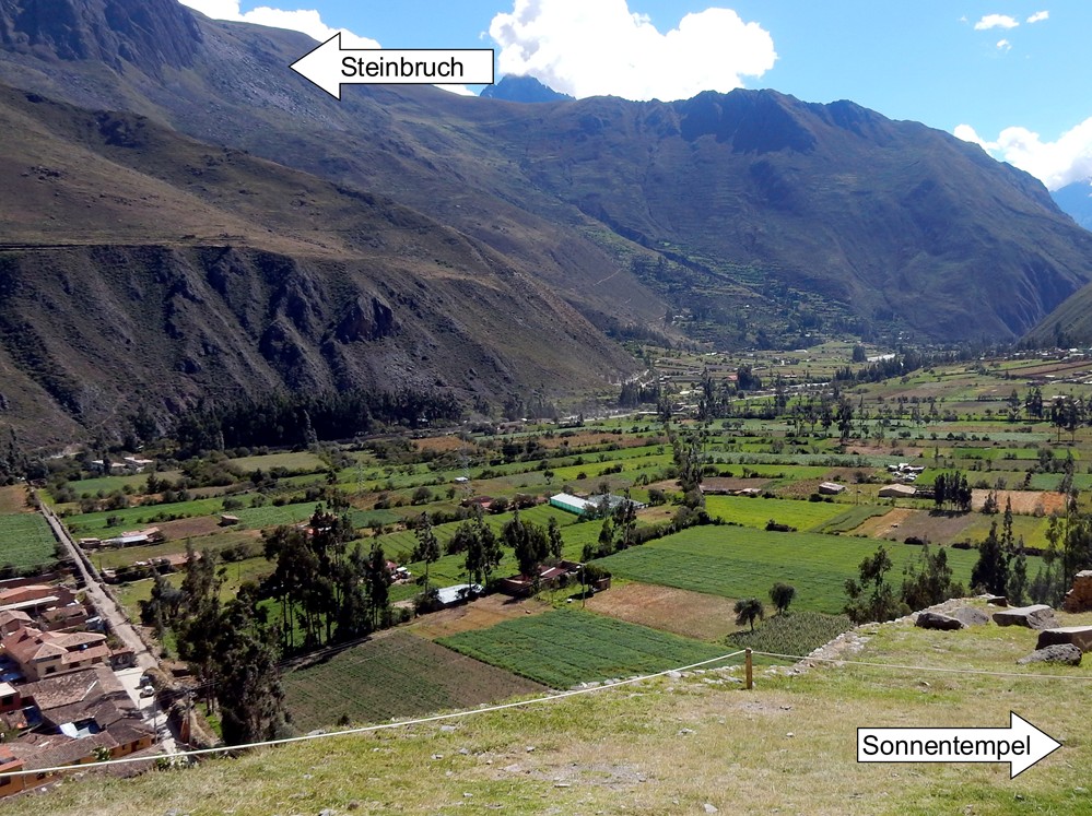 Der Tag ist eigentlich zur freien Verfügung, doch die meisten aus unserer Gruppe haben das zusätzliche Ausflugspaket gebucht. Um angenehme 9.00 Uhr fährt unser Bus Richtung Valle Sagrado ab. Erste Station ist Chinchero, etwa 30 Kilometer nordwestlich von Cusco. Der kleine Ort war Sommersitz der Inkas. Hier finden sich heute noch viele Mauern und Fundamente aus der Inkazeit. Zuerst besichtigen wir ein Privathaus, in dem wir ausführlich über das Spinnen und vor allem Färben der Alpakawolle informiert werden (Bild 1). Wie schon üblich wartet ein kleiner Verkaufsladen auf unsere Einkäufe. Von hier führt ein steiler Fußweg zu dem Ausgrabungsgelände in 3800 m Höhe und wir dürfen hier somit schon mal die Luft testen, die uns auch am Titicaca-See erwarten wird. Auf den umliegenden Bergen können wir zahllose Terrassen besichtigen, auf denen die Inkas früher Kartoffeln angebaut haben (Bild 4). In der Kirche wird die Messe bis heute oft in der indigenen Sprache abgehalten. Sonntags findet hier ein farbenprächtiger Indiomarkt statt, die bunte Mischung aus Essensständen, Gemüse- & Obstmarkt und Kleidung wird von unseren Kameras dankbar aufgenommen (Bilder 5 & 6). Weiter geht es in Serpentinen wieder 900 m tief hinunter in das Valle Sagrado (Heiliges Tal der Inka). Das Hochtal war für die Landwirtschaft der Inkas die bedeutendste Anbaufläche. Begünstigt wurde dies dadurch, weil sich das Tal im Lauf der Zeit mit Schwemmmaterial aufgefüllt hat, was zu idealen Voraussetzungen für den Ackerbau geführt hat. Weiter geht es bis zu unserem heutigen Ziel Ollantaytambo (2850 m). Der Ort liegt zwar nur 60 km von Cusco entfernt, aber aufgrund der schlechten Wegverhältnisse muss man mit gut zwei Fahrtstunden rechnen. Die eigentlichen Sehenswürdigkeiten bilden die Gassen aus der Inkazeit, die in einem Rastermuster von 15 Quadraten angelegt sind. Sie sind das einzig verbliebene originale Beispiel für eine Stadtplanung der Inkas. Zur damaligen Zeit war der Ort Zentrum der Verwaltung, des Militärs und der religiösen Einrichtungen. Diese stehen jedoch nicht auf dem Programm und so wenden wir uns gleich den ausgeprägten Terrassen zu, die sich einen schmalen Berghang hinaufziehen (Bild 9). 250 Treppenstufen später erreichen wir die Grundmauern eines Sonnentempels, der allerdings nicht fertig gestellt werden konnte, da die Spanier im Anmarsch waren. Die Anlage wurde also ungeplanter maßen zur Festung umgewidmet. Besonderes Augenmerk bilden die riesigen Steine für den geplanten Bau. Der damalige Kaiser wollte aber dummerweise nicht in den üblichen grauen Steinen (wie in Cusco) der Sonne huldigen, sondern in rötlich gefärbten. („Lieber Baumeister, wo du die roten Steine herkriegst, ist dein Problem, du weißt ja, wenn nicht, dann Kopf ab“). Der arme Baumeister wurde tatsächlich fündig, der dazu notwendige Steinbruch liegt aber auf der anderen des Tals in etwa 3500 m Höhe. Wie die bis zu 70 Tonnen (!!!) schweren Brocken von dort in das 600 m tiefere Tal hinunter und auf der anderen Seite wieder sicher 200 Höhenmeter hinausgeschafft wurden, kann die Wissenschaft bis heute nicht erklären und es wird wohl so ein ewiges Rätsel bleiben. Selbst mit modernster Technik würde man heute vor diesem Problem ziemlich hilflos dastehen (siehe Bild 10). An einer Bergflanke gegenüber erkennt man eine weitere große Anlage. Hier handelt es sich aber nicht um eine Befestigung, sondern ganz profan um Lebensmittelspeicher (Bild 8). Zurück nach Cusco.
