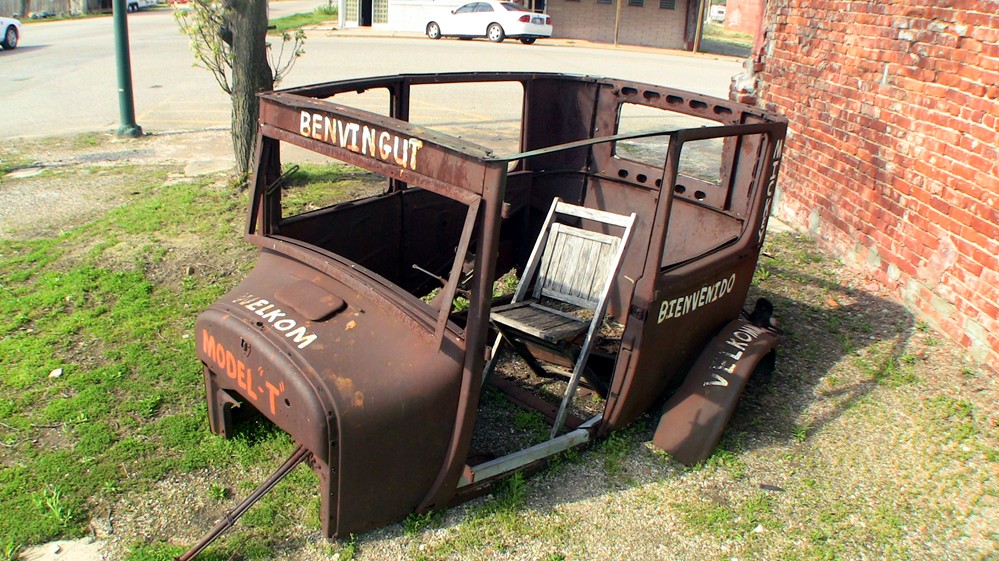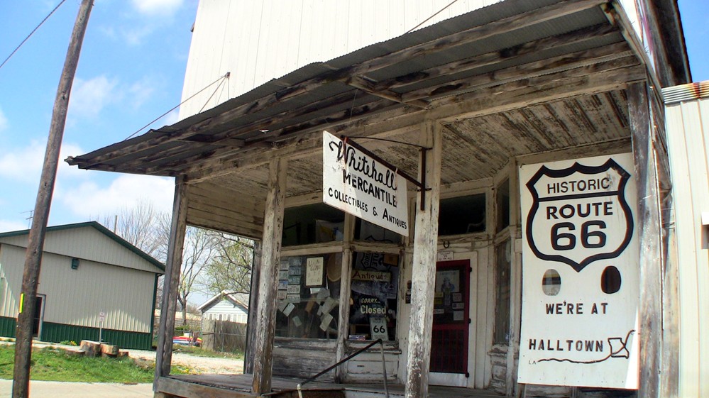 Depew dagegen, für dessen Besuch man die Schnellstraße verlassen muss, hat sich schon fast vollständig zur Geisterstadt zurückentwickelt, es wirkt wie ausgestorben, es zeigen sich die ersten Ruinen und viele Flächen sind dem Wildwuchs überlassen. Genau 3 Läden sind noch geöffnet, darunter ein überraschend fittes Restaurant und kurioserweise ein Laden mit Geschenkartikeln (!). Alles andere ist vernagelt. Vielleicht hat der Niedergang des Ortes damit zu tun, dass er selbst von der historischen Trasse im wahrsten Sinn des Wortes links liegen gelassen wurde, was man an dem Rest unterhalb des Ortes noch erkennen kann. Auch auf dem Weg bis zum nächsten Ort entdeckt man immer wieder