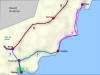 Mutrah - Quirat - Dibab - Wadi Shab - Sur - Ras al-Junayz |