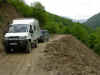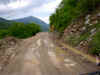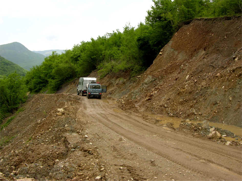 Die in den meisten Karten dick eingezeichnete Hauptverbindungsstrecke entpuppte sich in Wirklichkeit als winziges Sträßchen, das im bosnisch-serbischen  Grenzgebiet zu einem Feldweg wurde  (siehe Fotos) , der dann kurz hinter der serbischen Grenze im Mai 2005 ganz aufhörte .