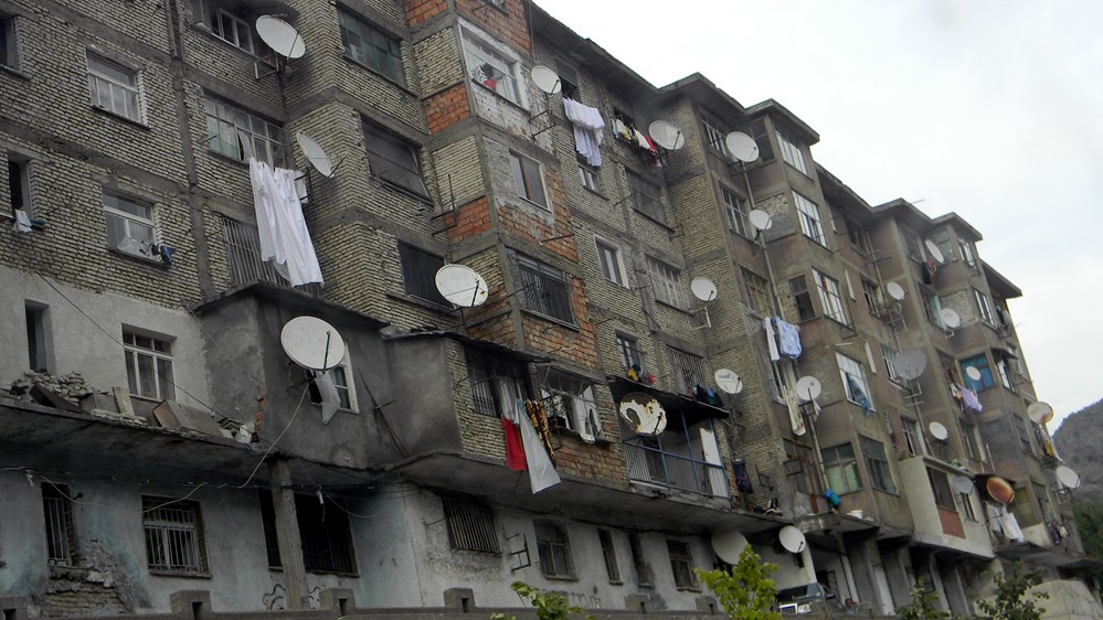 Der deprimierend wirkende Ort begrüßt uns zunächst mit einem riesigen, maroden, halb verfallenen Industriekomplex und besteht aus einer Ansammlung meist trauriger Häuser.