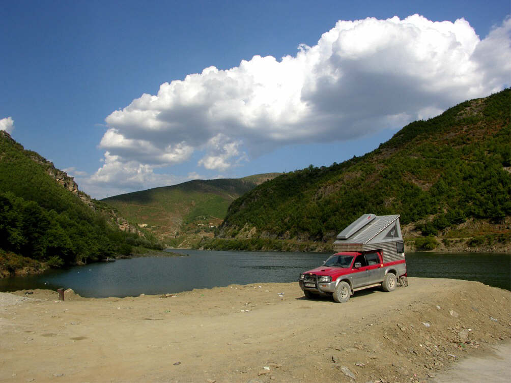 Die Zufahrt von Süden her kann auf die Dauer etwas nervig sein, dafür wird man mit schönen Ausblicken auf das weit reichende Stausee-System belohnt. Ab der Passhöhe Qafa e Shilakut zum Teil sehr schlechte Teerstraße.