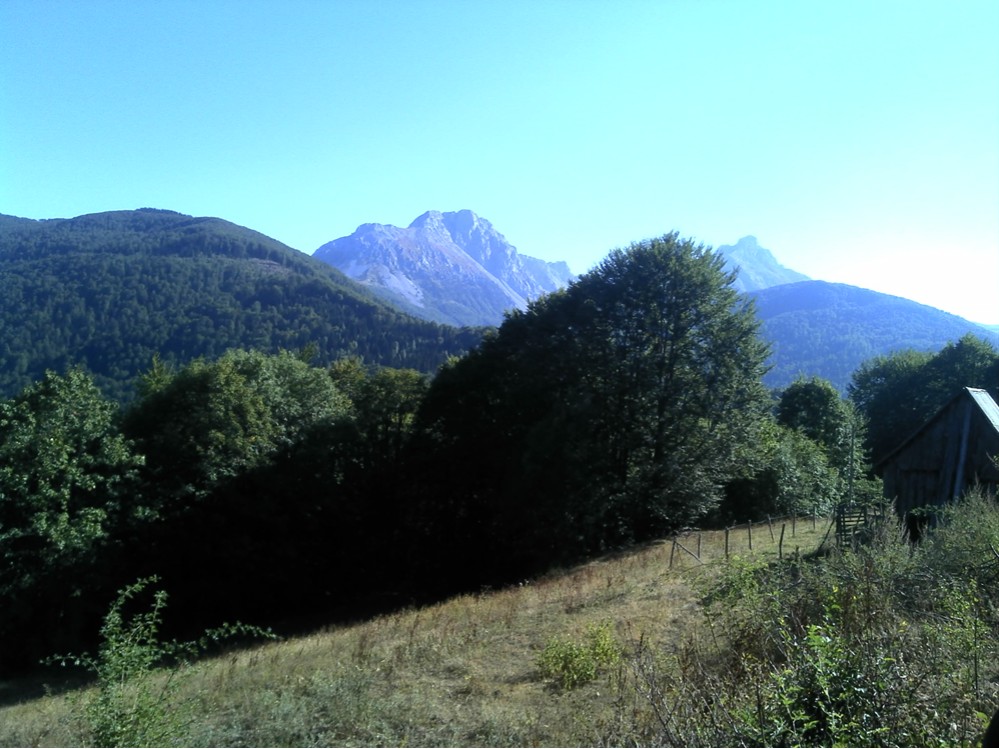 Der Weiler besteht nur aus wenigen Gebäuden. Die Straße wendet sich nun nach Osten, ist deutlich schmäler und zum Teil recht holperig. Es herrscht wenig Verkehr, außer wenn im Herbst zahlreiche altertümliche Laster ihre Holzladung in die Täler bringen.