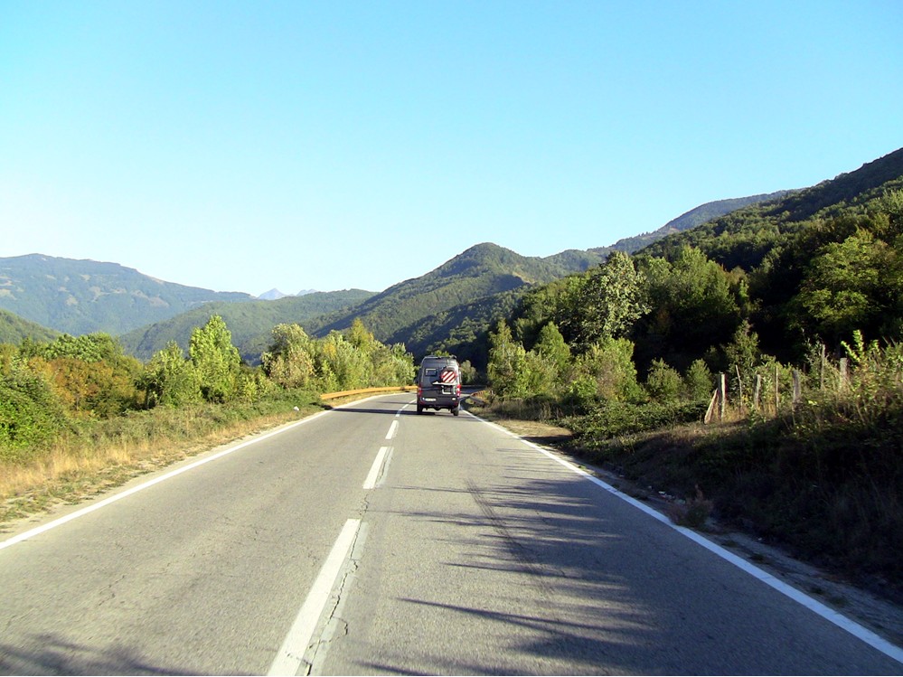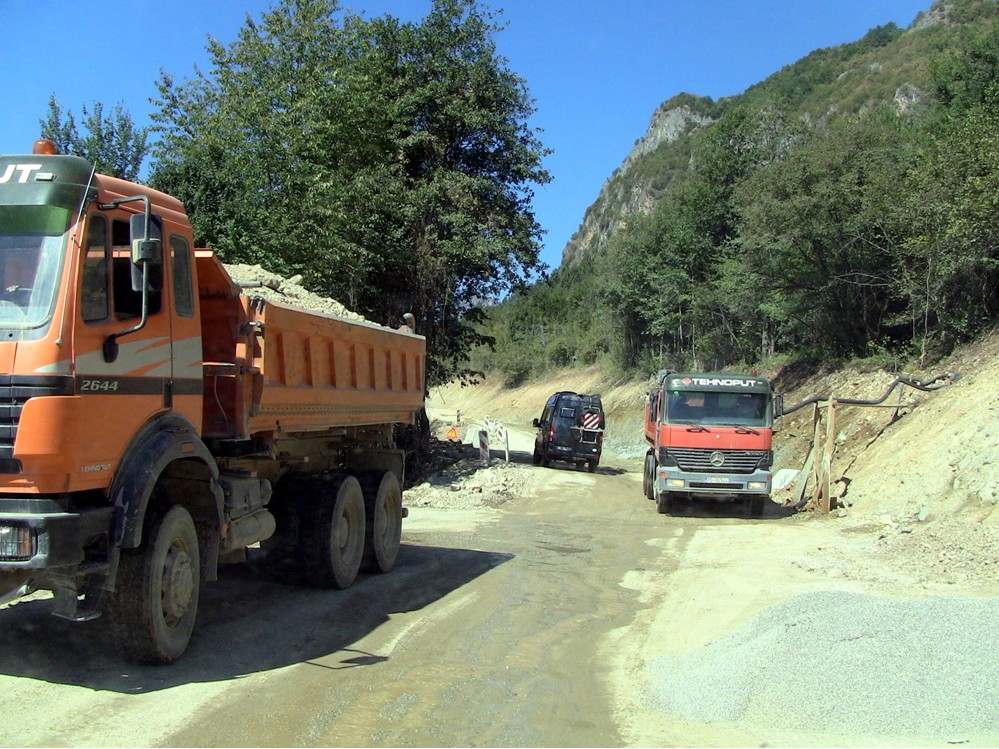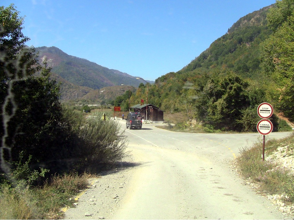 Links führt die Straße zum letzten Ort in Montenegro, wir biegen nach rechts zunächst auf eine breite Schotterpiste ab. Zurzeit (SEP 2012) sind hier bis zur Grenze umfangreiche Bauarbeiten im Gange, so dass mit einer kompletten Asphaltierung bis Ende des Jahres zu rechnen ist.