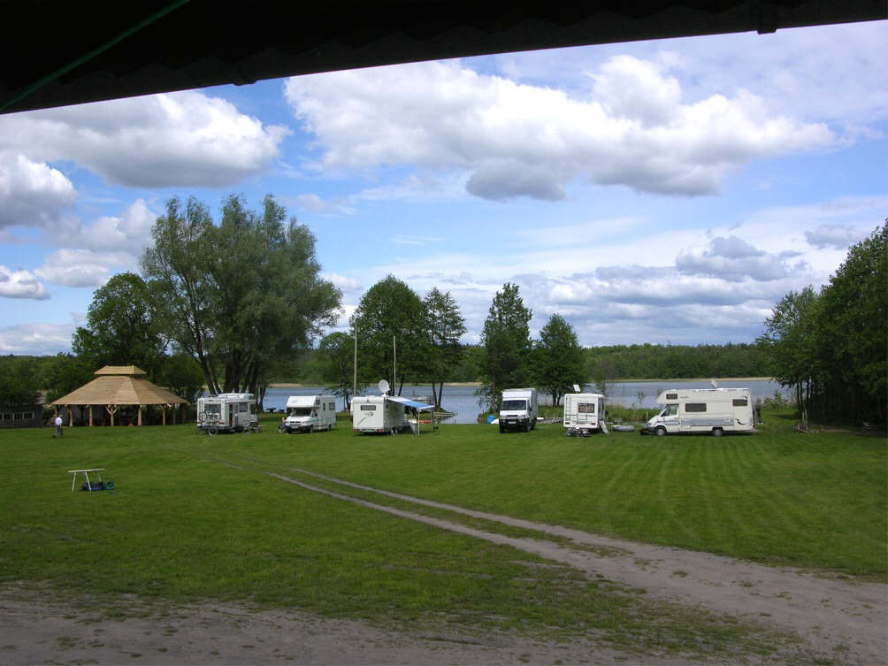 Ca. 1 km westlich von Chałupy. Großzügiger Rasenplatz mit noch wenig Schatten zwischen