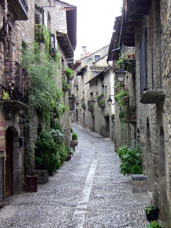 Die Altstadt von Ainsa ist unserer Meinung der schönste Ort dieses Teils der spanischen Pyrenäen. Was hier in der Saison los ist, kann man an dem riesigen Parkplatz hinter den Burgresten abmessen (hier evt. auch Wohnmobilstellplatz, Toilette am Burgeingang).